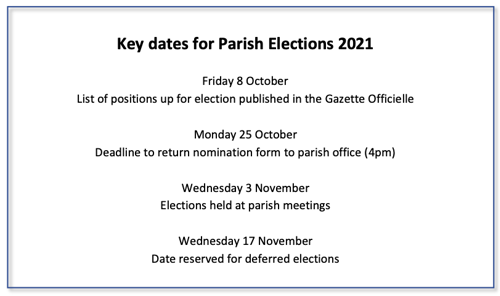 By law, the parish Constables are responsible for the day-to-day administration of the parish, assisted by a small team of parish staff, while the Douzeniers are representatives of the parishioners and are responsible for the vision and direction of the parish and the transparency of its affairs.